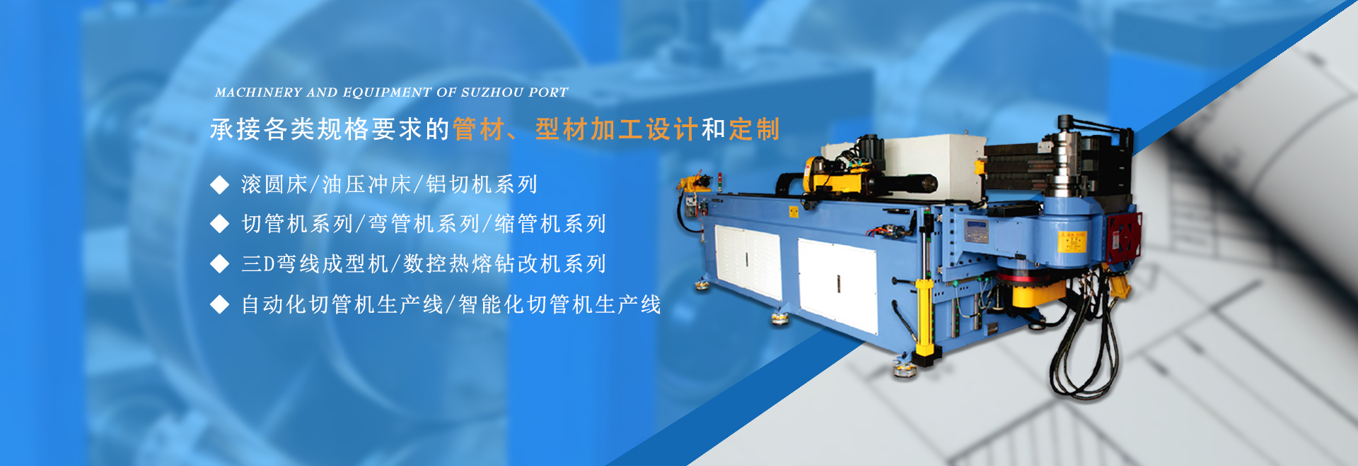 廈門(mén)蘇港機(jī)械設(shè)備有限公司位于風(fēng)景優(yōu)美的鷺島——廈門(mén),公司是一家集科研、生產(chǎn)、銷(xiāo)售為一體的企業(yè),嚴(yán)格的品質(zhì)管理與完善的善后服務(wù)、合理的市場(chǎng)價(jià)格是我們力于競(jìng)爭(zhēng)的前提。 精益求精當(dāng)然出類(lèi)拔萃,公司在原有的技術(shù)基礎(chǔ)上,不斷的引進(jìn)國(guó)內(nèi)外先進(jìn)技術(shù)和管理辦法。專(zhuān)業(yè)制造系統(tǒng)金屬圓鋸機(jī)、DW系列單頭彎管機(jī)、SW系列雙頭彎管機(jī)、SG系列管端成型機(jī)、SG鋸片研磨機(jī)、YW系列龍門(mén)柱式壓管機(jī)、空心鉚接機(jī)、系列倒角機(jī)等八大類(lèi)近五十個(gè)品種的各類(lèi)管材、型材加工機(jī)械。
